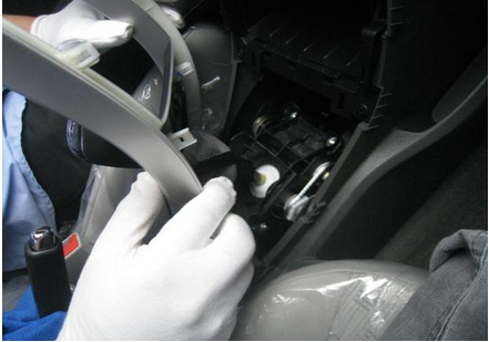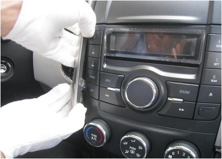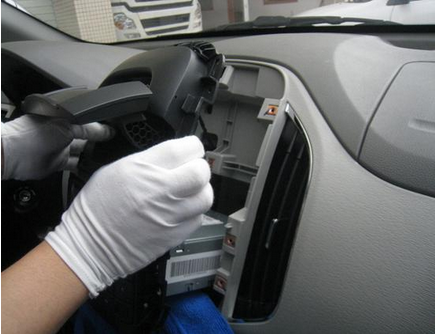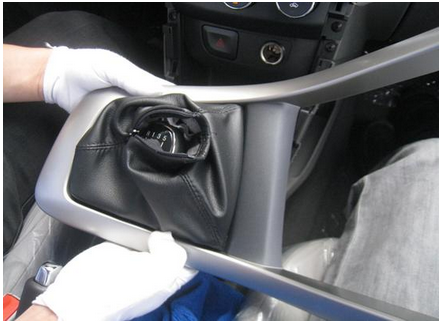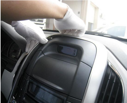 在原车中控台附近铺好毛巾,以防灰尘、杂物弄脏车内饰。