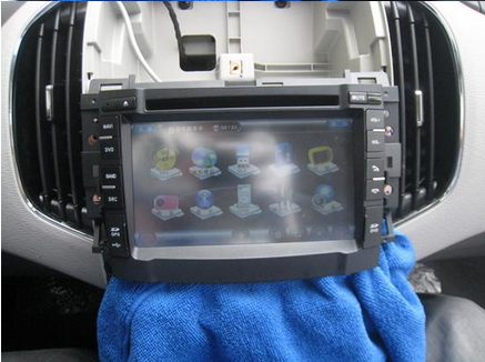 进行机器测试,开机没问题,画面清晰,各项功能也进行测试:DVD读碟功能、虚拟六碟功能、收音功能、蓝牙功能等都顺利通过测试。